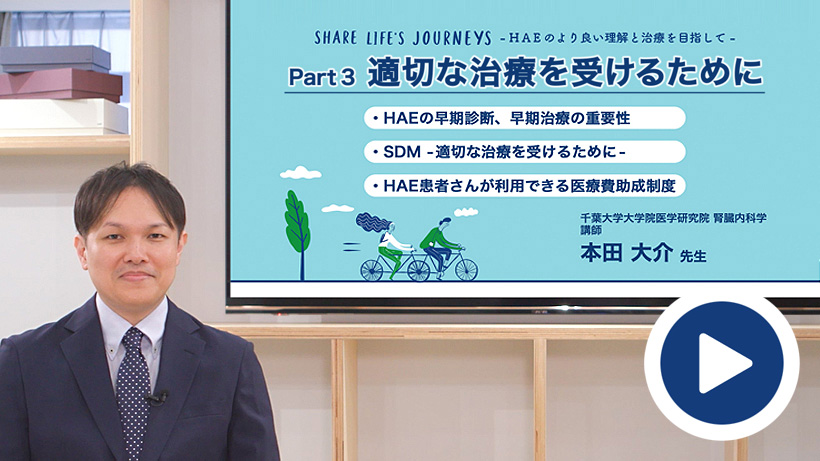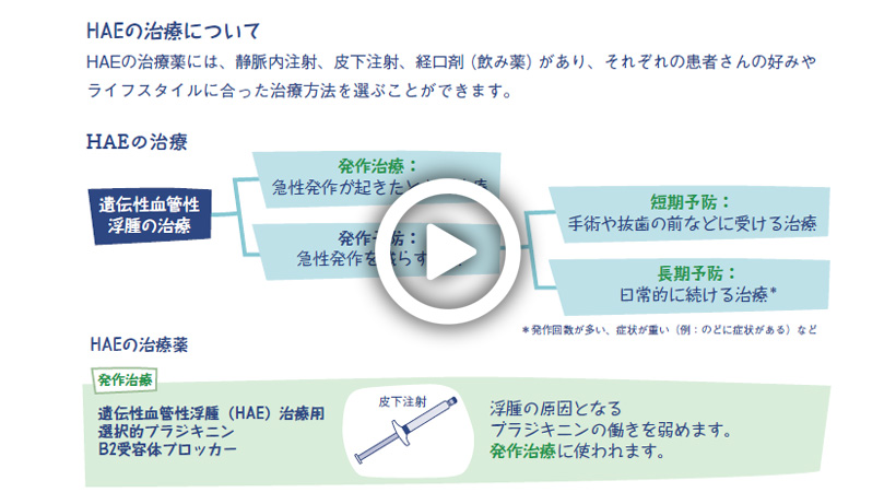 近年、遺伝性血管性浮腫(hereditary angioedema: HAE)の治療法は大きく進歩し、発病した際の治療だけでなく、発作を予防することが可能な新たな治療薬も登場しています。これにより、HAEの治療は「選択できる時代」へと大きく変化しました。しかし、患者さん一人ひとりが適切な治療を受けるためには、HAEという病気を正しく理解しておくことが大切です。
